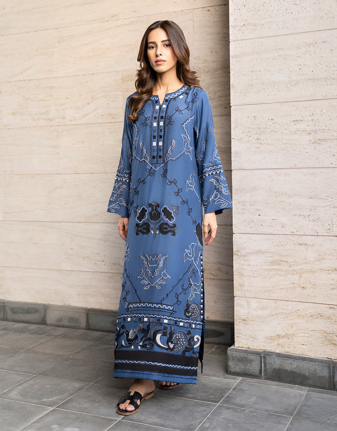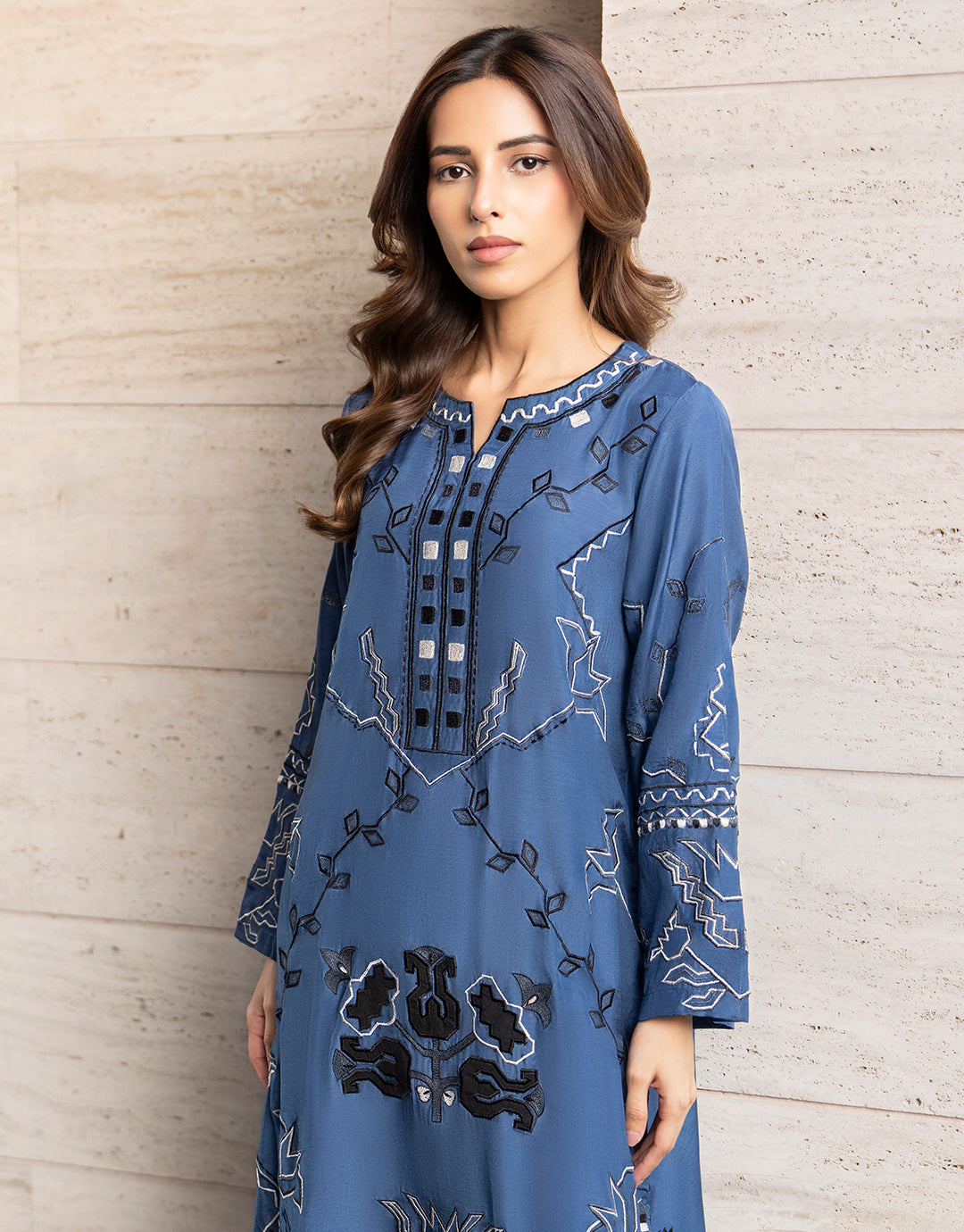 This beautifully embroidered 1-piece shirt is crafted from pure Khadi Silk, offering a perfect blend of tradition and style. The deep blue hue and intricate threadwork lend it a graceful yet contemporary charm. Ideal for casual and semi-formal wear, this statement piece combines breathable comfort with timeless elegance—an effortless addition to your everyday wardrobe.